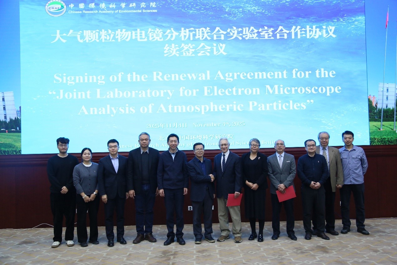 2025年11月4日,中國環(huán)境科學(xué)研究院(以下簡(jiǎn)稱中國環(huán)科院)與美國R.J. Lee集團(tuán)、北京邁特高科技術(shù)有限公司舉行“大氣顆粒物電鏡分析聯(lián)合實(shí)驗(yàn)室”(以下簡(jiǎn)稱聯(lián)合實(shí)驗(yàn)室)三方合作協(xié)議續(xù)簽儀式。中國環(huán)科院副院長(zhǎng)陳勝,美國R.J. Lee集團(tuán)副總裁Gary S. Casuccio、高級(jí)科學(xué)家李龍,北京邁特高科技術(shù)有限公司董事長(zhǎng)陳鋒、總經(jīng)理李江等出席簽約儀式。會(huì)議由中國環(huán)科院大氣所所長(zhǎng)胡京南主持。